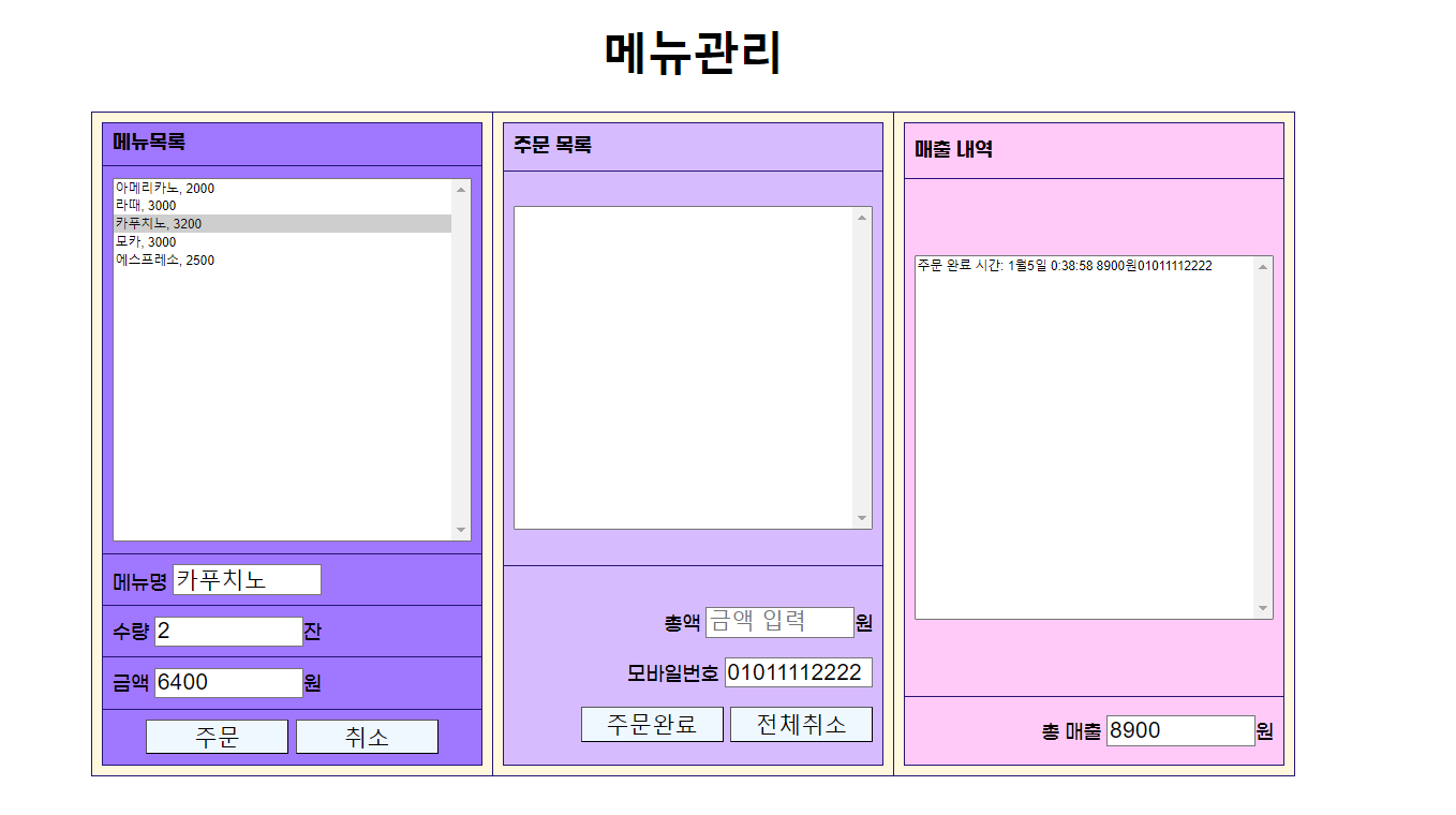 첫 번째 카페 주문 목록